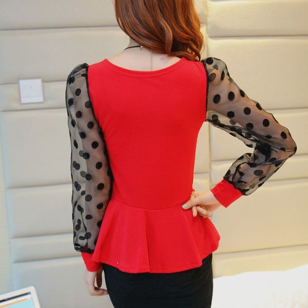 Sweet Girls Round Collar Polka Dots Long Sleeve Blouse