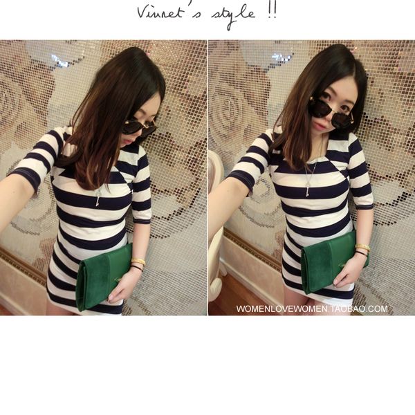 Slim was thin stripe dressFabric: CottonWidth: 35cmBust :60-86cmLength: 80cm