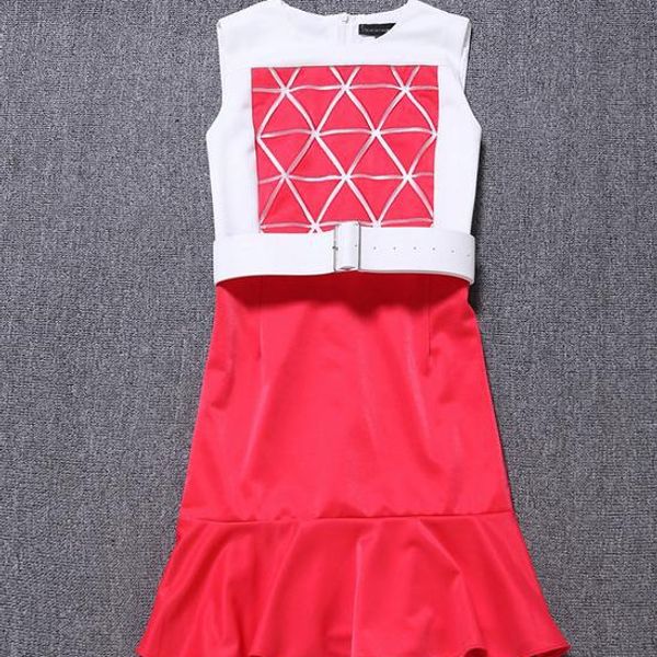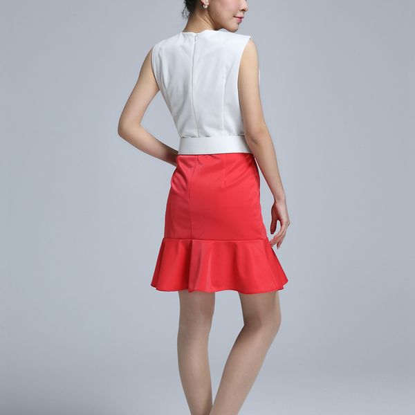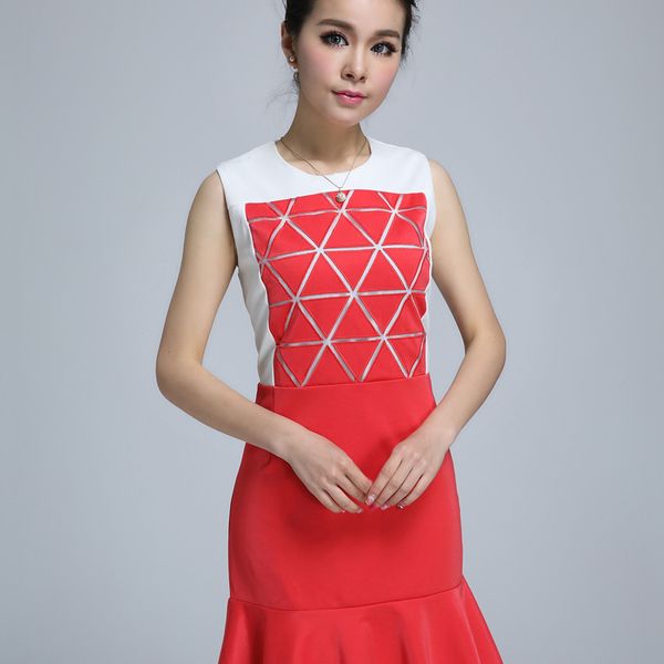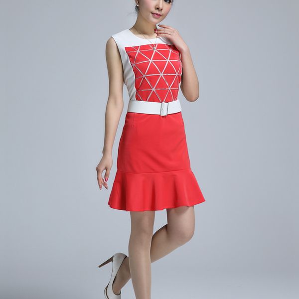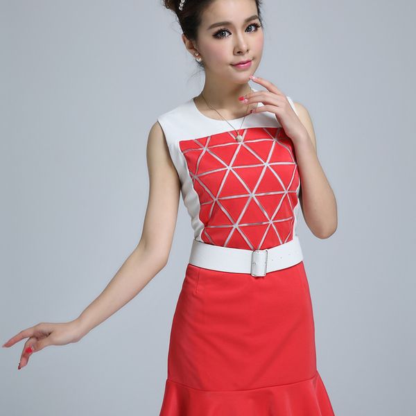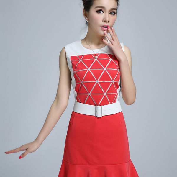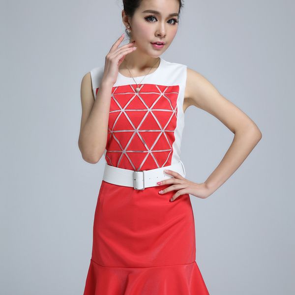vic 搜款网 2014早春新款女装三角形荷叶边修身鱼尾连衣裙子(带腰带)9018