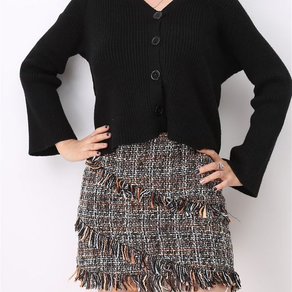 Women's New Autumn Two Pieces Fashion Sets Long Sleeve V-neck Button Cardigan Knitted Shirt with Short Skirt