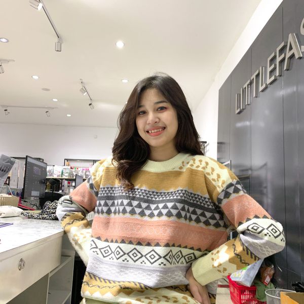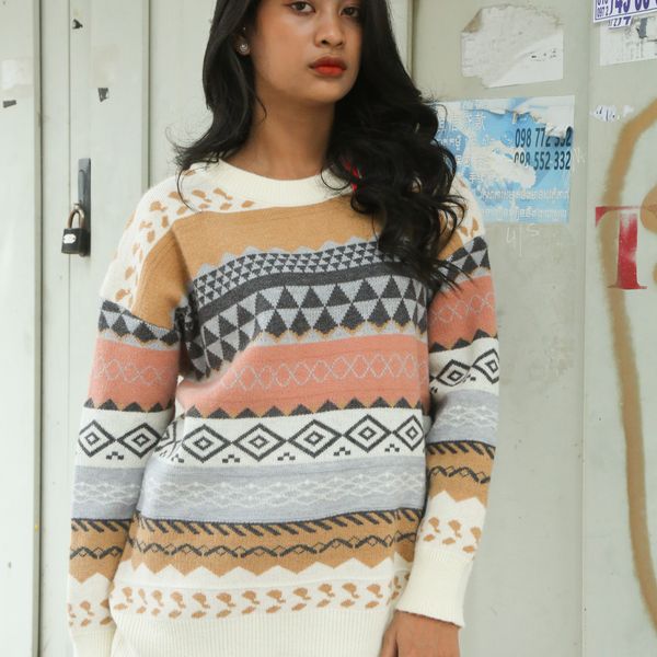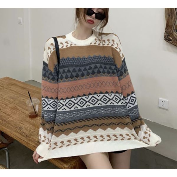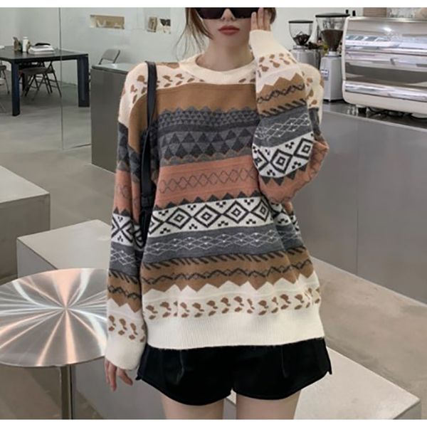 Women's New Fashion loose jacquard round neck long sleeve knitted sweater women