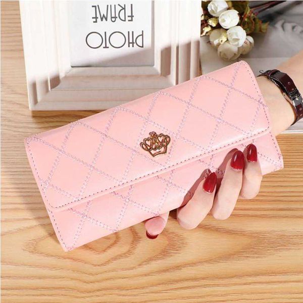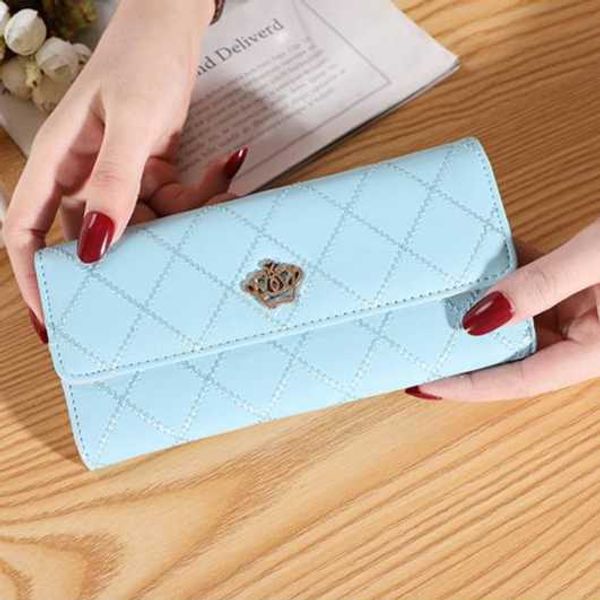 Women's Wallet Long Three-Layer Clutch Lingge Crown Wallet