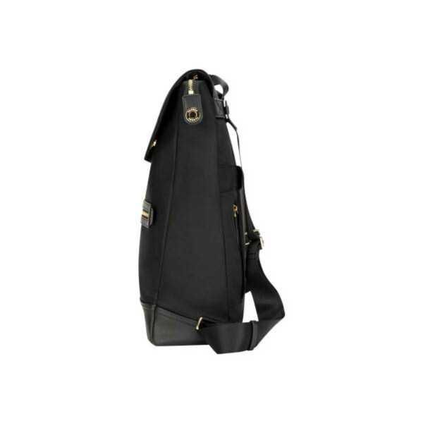 - The Targus Newport Convertible 2-in-1 Messenger/Backpack caters to the always-on lifestyle of the modern professional by offering seamless transitions between two silhouettes and specially designed features for both utility and style.The bag features a protective cradle for slim laptops or tablets, and a slim main compartment to hold files, sunglasses and other small accessories. Convert from backpack to messenger by extending the adjustable shoulder straps through the strategically placed lip of the back panel. For those that frequently travel for work or simply need a handy bag for a leisure getaway, it can easily be attached to rolling luggage with a luggage strap for a weightless carry.Made from a thoughtful combination of high-density water-repellent twill nylon and leatherette accents, the bag boasts a luxurious sheen in addition to resilience against the wear and tear of being your everyday bag.