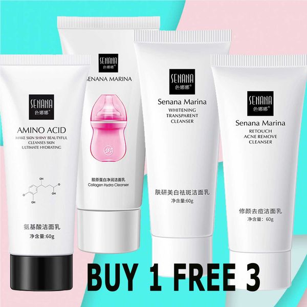 【buy 1 free 3】SENANA Nicotinamide Amino Acid Face Cleanser Facial Scrub Cleansing Acne Oil Control Blackhead Remover Shrink Pores Skin Care 60g