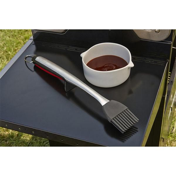Handy kickstand keeps your brush off grill surfaces in between basting sessions