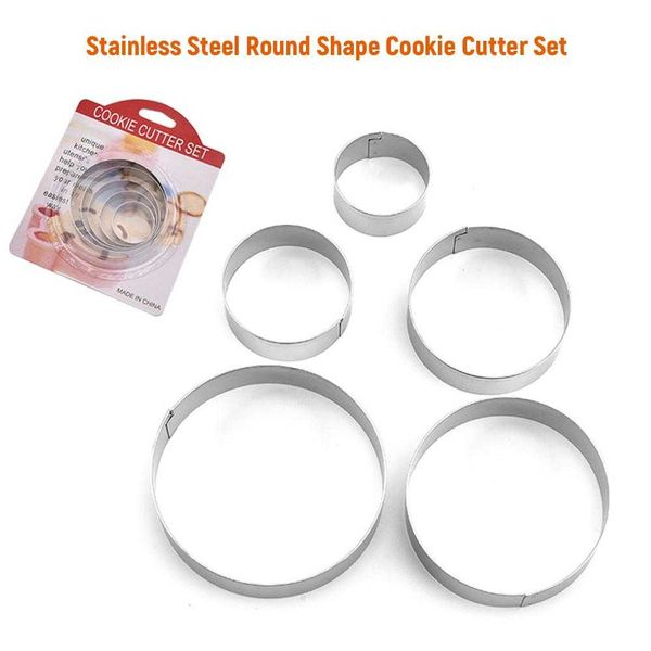 5PCS Cookie Baking Molds Circle Metal Mold Set Stainless Steel Round Shape Biscuit Cutters Kitchen Gadgets Baking Tool