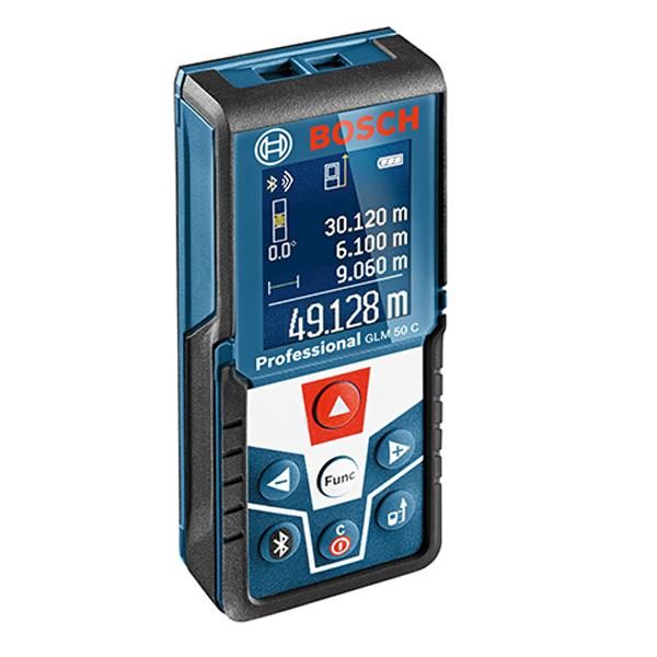 Whether it's the upgraded backlit color display or Bluetooth® technology that's compatible with both Bosch free apps (Measure & document and floor plan), this is a laser measure that's ready for anything. The Bosch GLM 50 C packs a lot of functions. including the basics of real-time length, length. area, volume and indirect. All-around soft grip protection on the GLM 50 C helps the device last longer by protecting it from damage. The laser measure's easy-to-use keypad ensures quick operation and the illuminated display provides better readability of measurements. The GLM 50 C can generate up to 10.000 measurements per battery supply. Range is 165 ft.