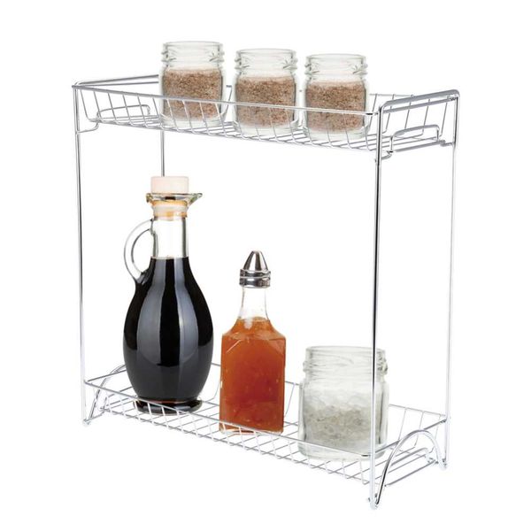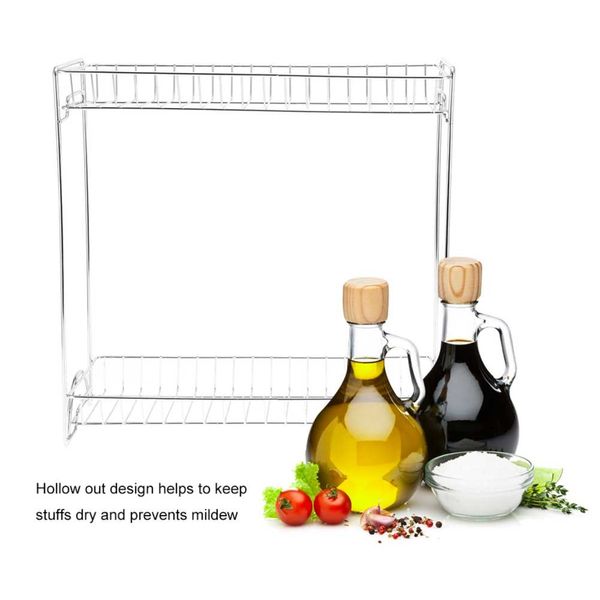 Two Layers Stainless Steel Storage Shelf Rack Home Kitchen Seasoning Holder Organizer