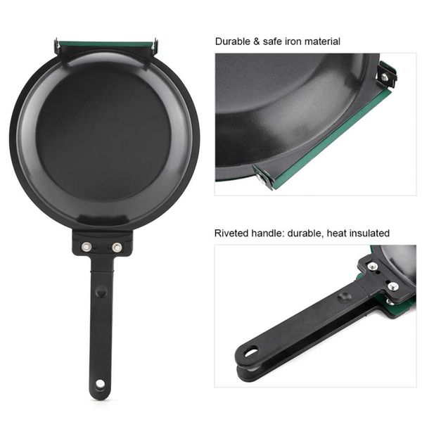 This double-sided frying pan is a wonderful kitchen cookware. You can use it make pancake, toasted bread and fried egg. It adopts premium iron with non-stick coating, easy to clean and durable. Get one and try to find the fun of cooking!