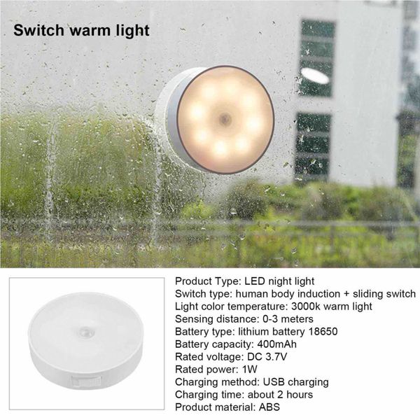 LED Night Light PIR Sensor Solar/USB Charging Smart Wardrobe Magnetic Lamp for Sink Wall With slide switch