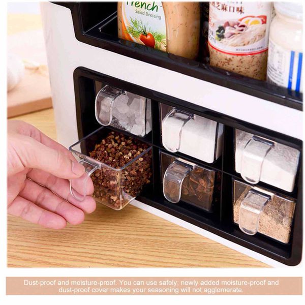 Dust-proof and moisture-proof. You can use it with confidence; add a moisture-proof and dust-proof cover to prevent your seasoning from clumping.
