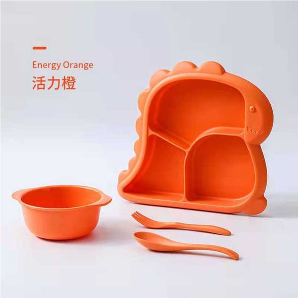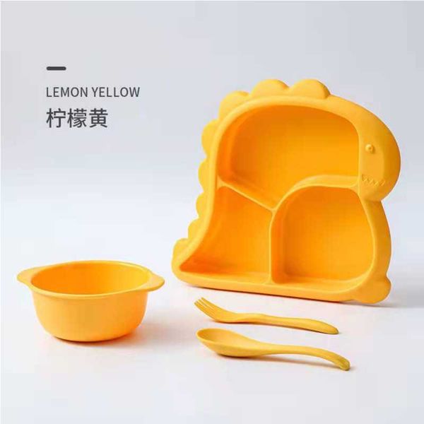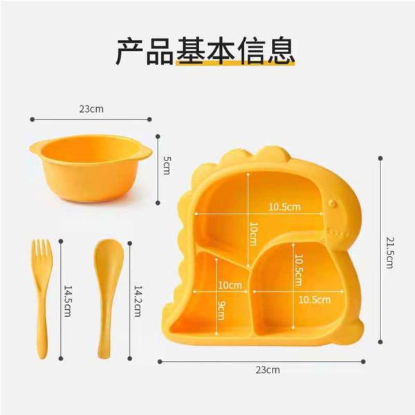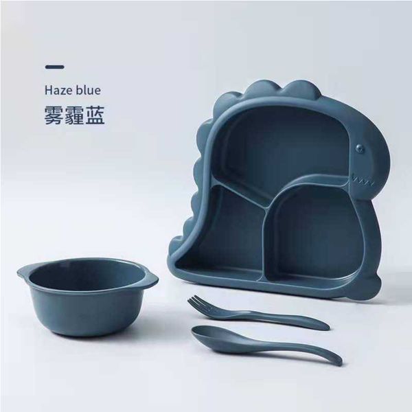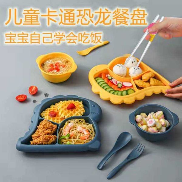 Baby Dishes Plate Cute Dinosaur Children Feeding Plate Baby Food Feeding Bowl spoon and fork For Children Feeding Baby Tableware Children Dining Dishes