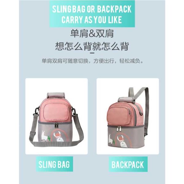 Comes with a sturdy hand carry handle - for hand carry Comes with a detachable and adjustable shoulder sling strap (or adjust to the smallest setting for hand sling) and can be set as a backpack, for the convenience of mummy.