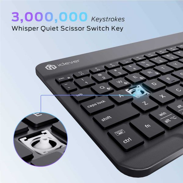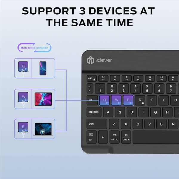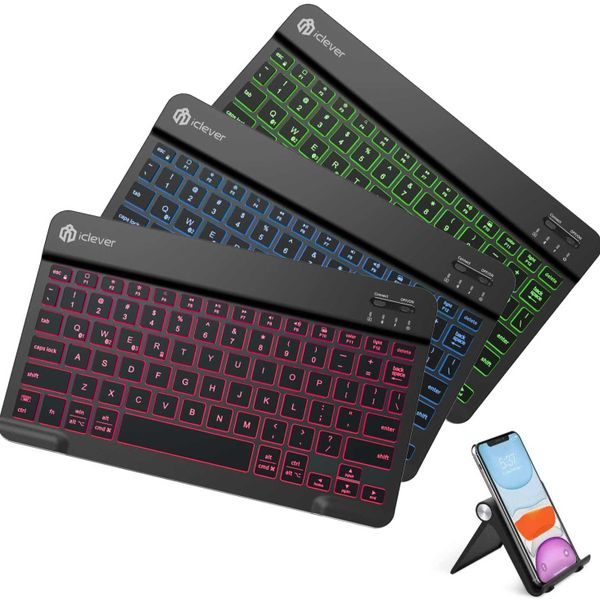 Package Contents: iClever backlight keyboard, USB-C charging cable, Phone and tablet stand, user manual, 18-month warranty card and 24 hours a day customer service.