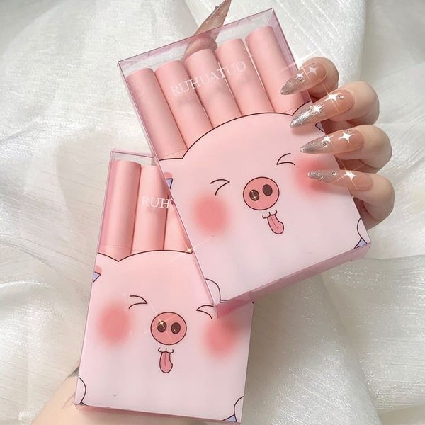 RUHUATUO lipstick 1ឈុតមាន5ពណ៍ 5ដើម លាបមិនខ្មៅមាត់ មិនប្រេះ មិនស្ងួតទេចា ពណ៍សុទ្ធតែស្អាតៗ