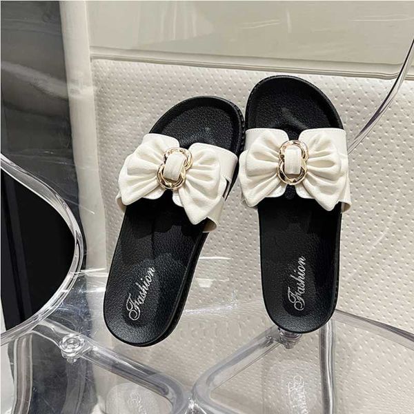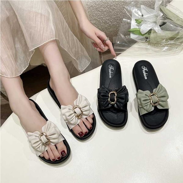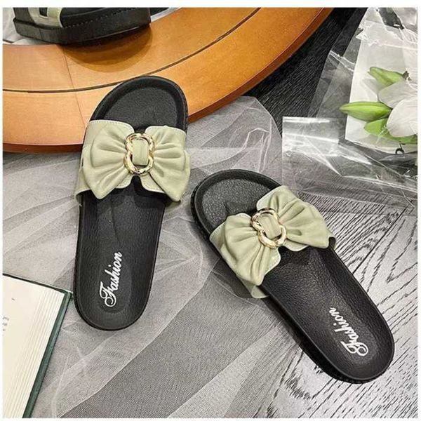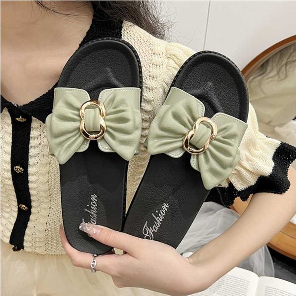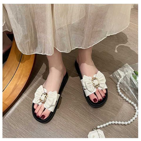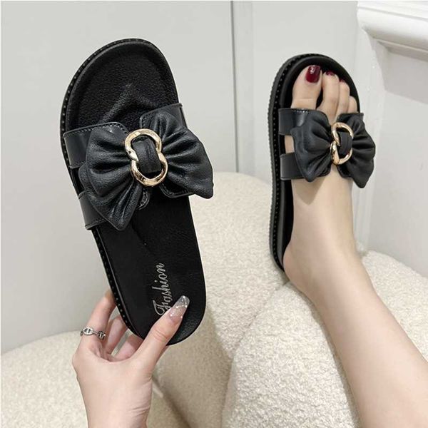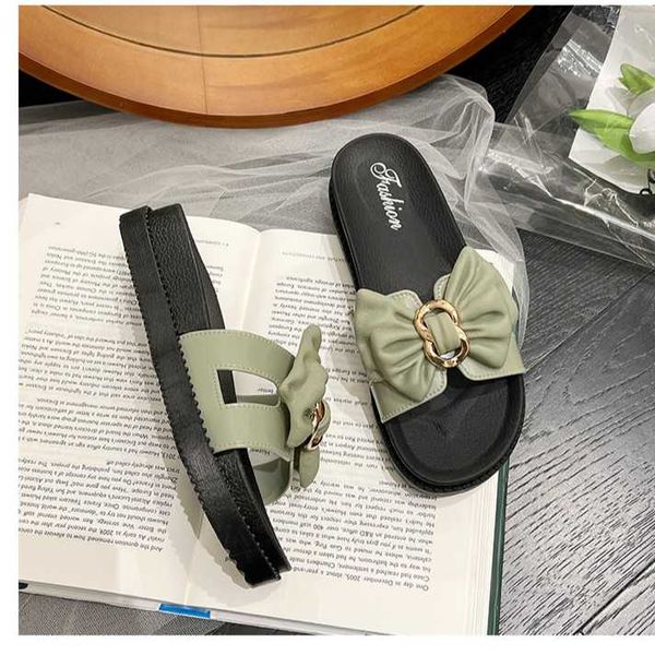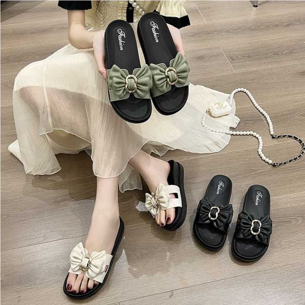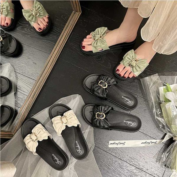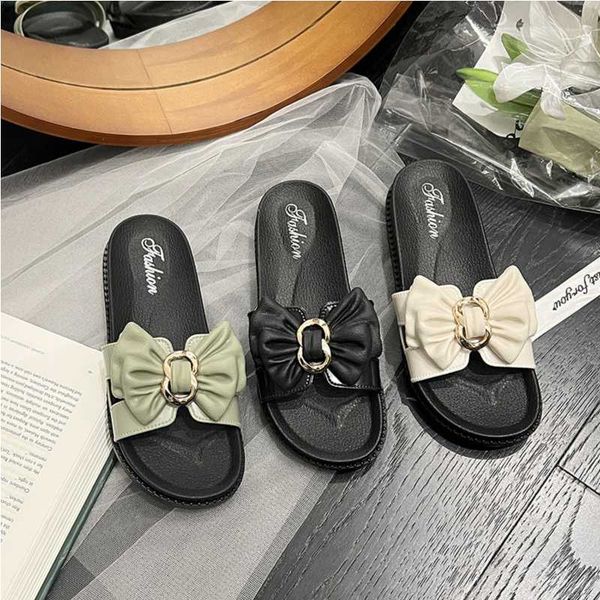 Slippers women wear fashion bow thick bottom soft outdoor ins word sandals
