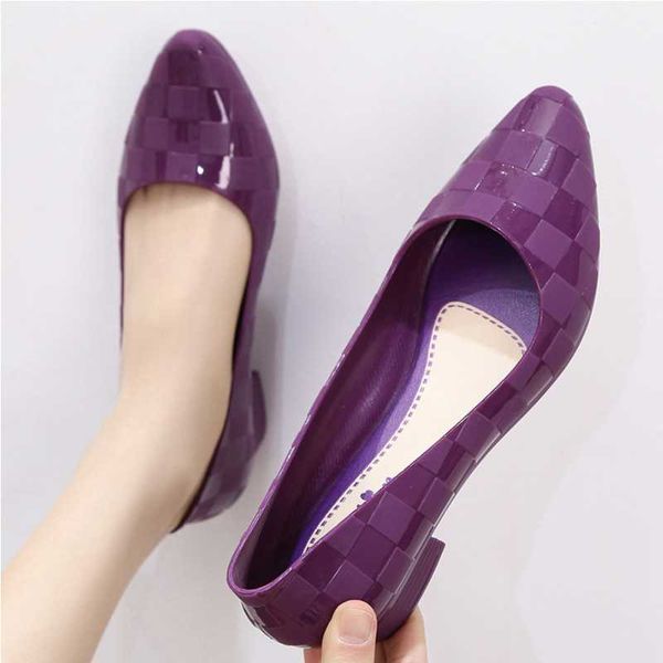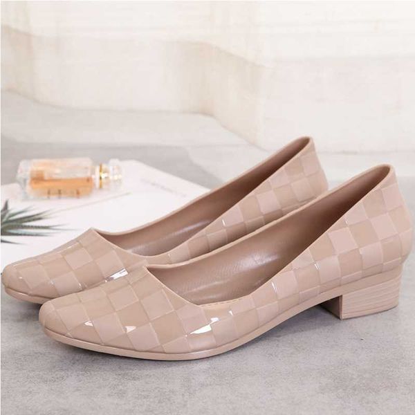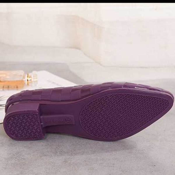 Non-slip wedge heel sandals women's fashion outer wear net red thick heel fairy Baotou middle heel single shoes pointed jelly soft bottom