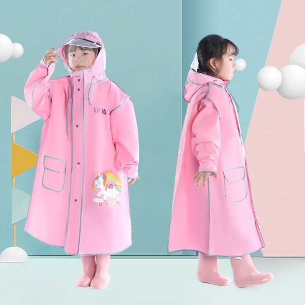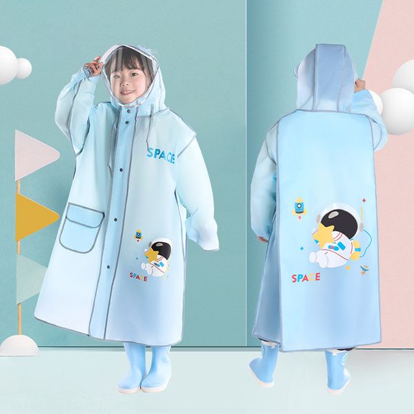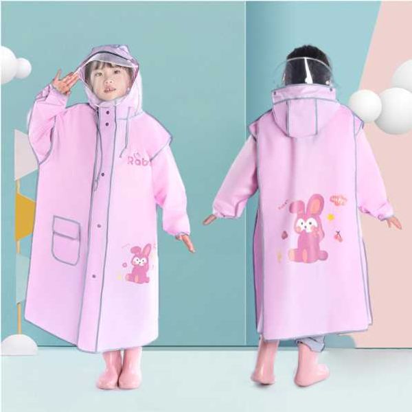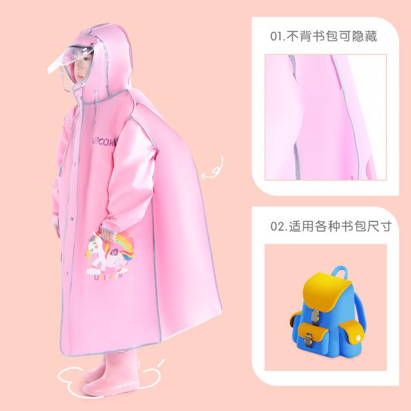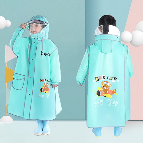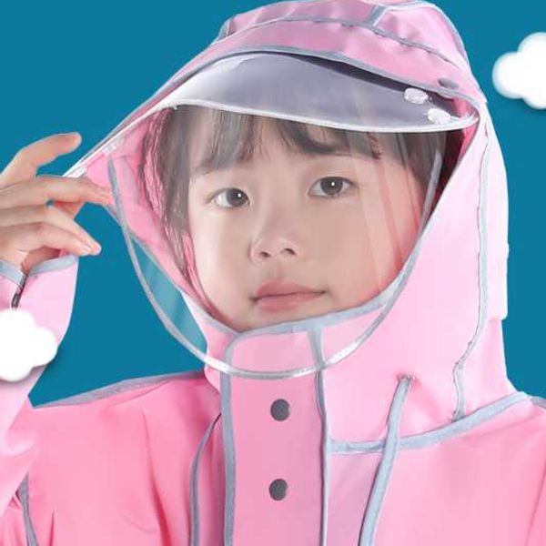 Large school bag for children's raincoat boys and girls children double hat brim elementary school students kindergarten with school bag cartoon long section