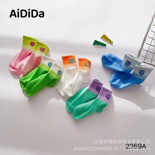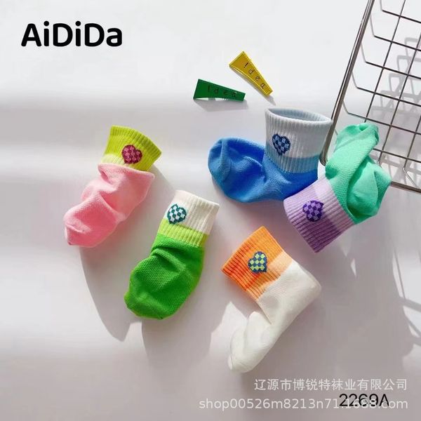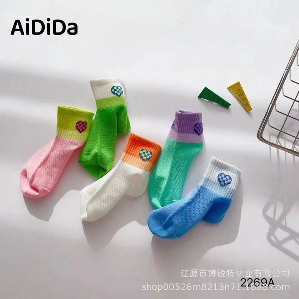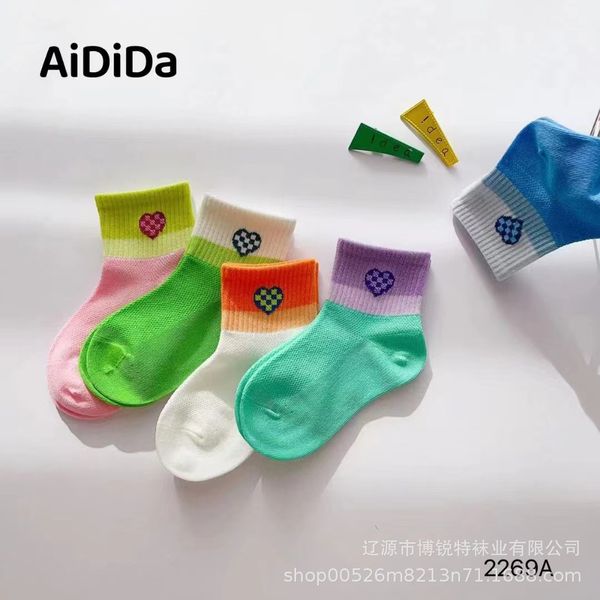 Aidida Children's Socks Spring and Summer New Combed Cotton Short Tube Socks Breathable Sweat-absorbing Gradient Color Love Socks