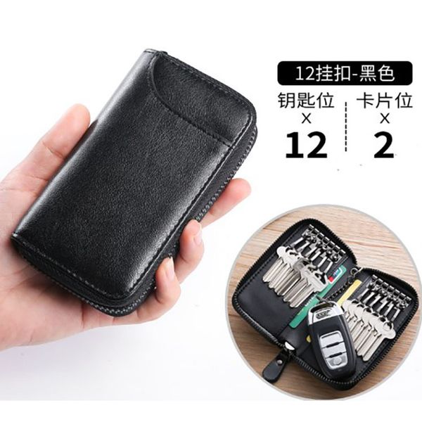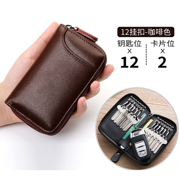 Genuine Leather Car Key Bag Men's Large Capacity Zipper Bag Women's Waist Hanging Key Bag Trendy Card Bag Driver's License