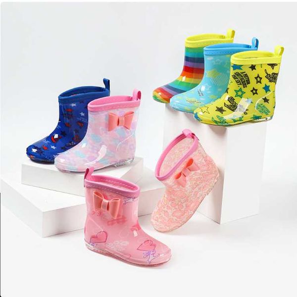Cross-border new children's rain boots and rain boots for children cartoon rain boots crystal bottom can be matched with a cotton cover