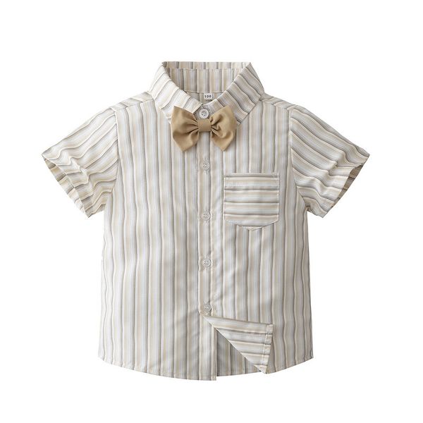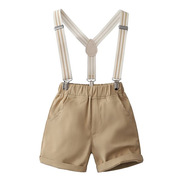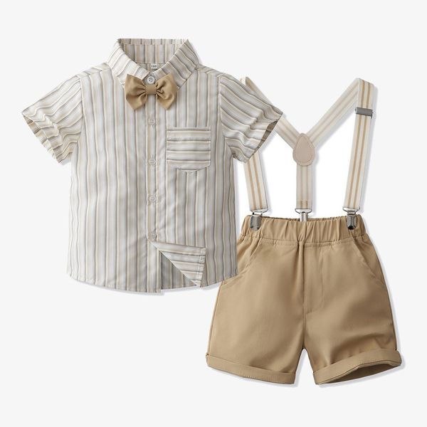 Boys' straps summer clothes 2023 new small and medium children's Korean version of cotton spring and autumn short-sleeved shirt striped suit trendy