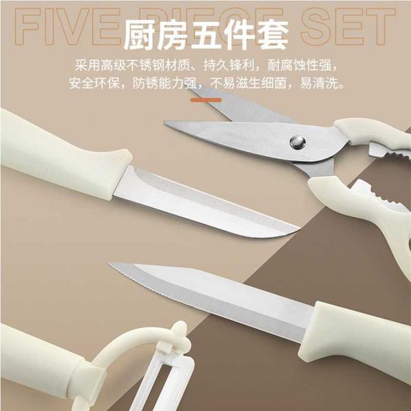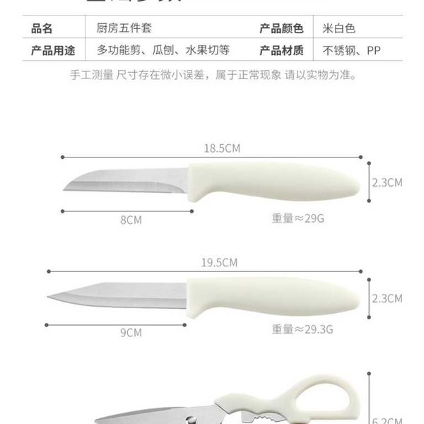 5-Piece Set Of Kitchen Small Tools With Storage Seat, Fruit Slicing Knife Combination, Melon Planer, Auxiliary Food, And Fruit Cutting Knife Set
