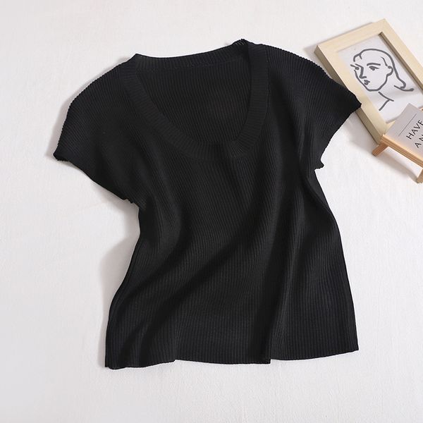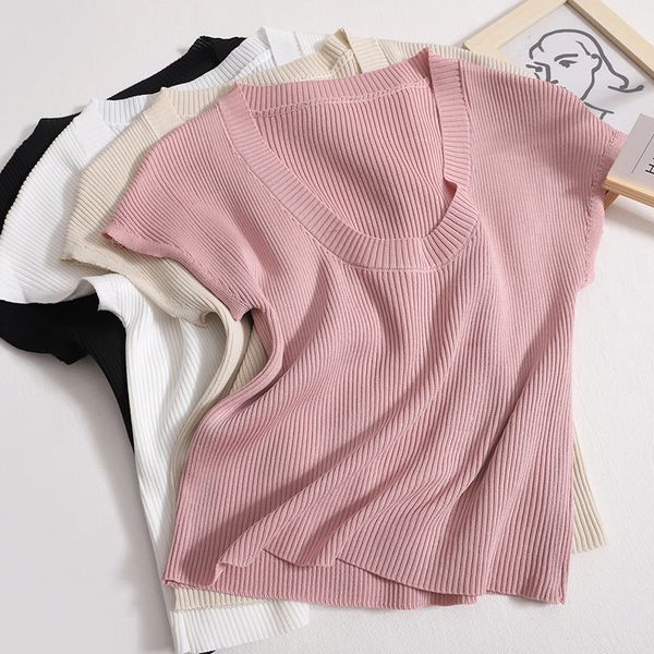 All-match sleeveless knitted sweater women's 2023 summer new Korean style low-necked slim fit short bottoming top trend
