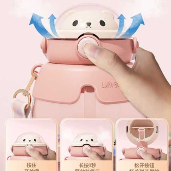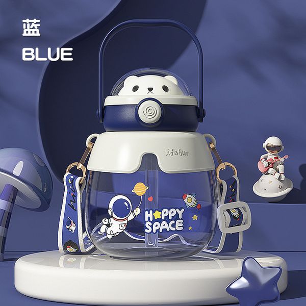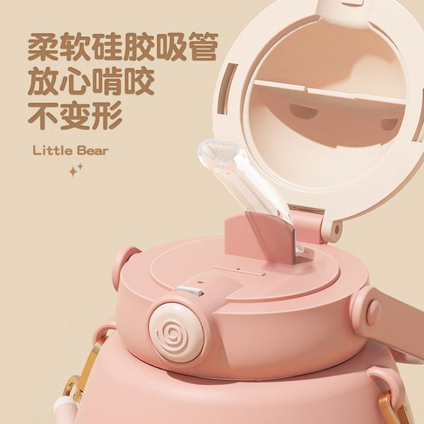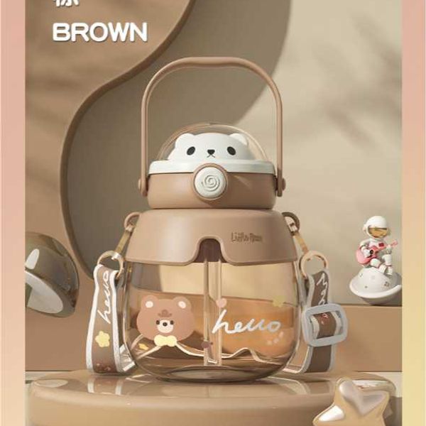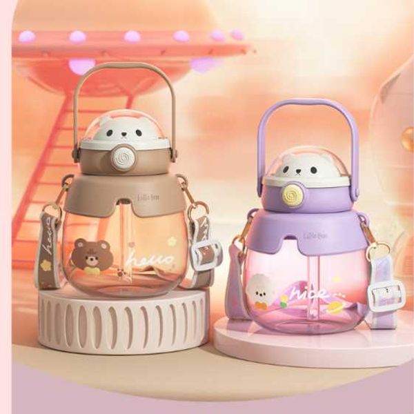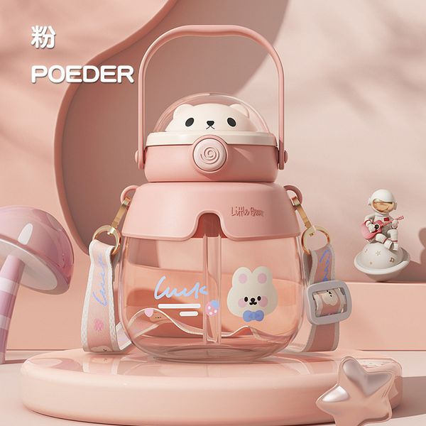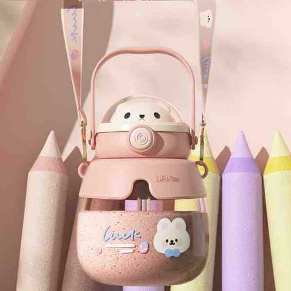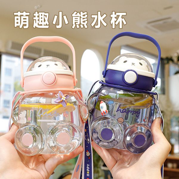 New bear children's water cup high-value couple large-capacity straw plastic cup student portable belly cup wholesale