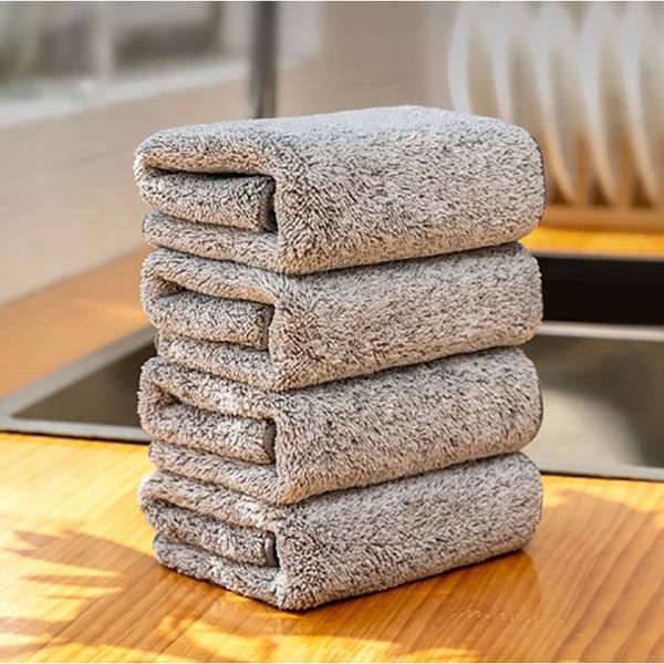 Japanese-style bamboo charcoal dish towel fine fiber dishcloth kitchen rag thickened with oil thickened absorbent cleaning wipe hand scouring pad 3pcs (29*29CM)