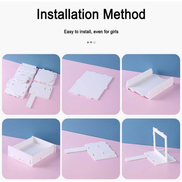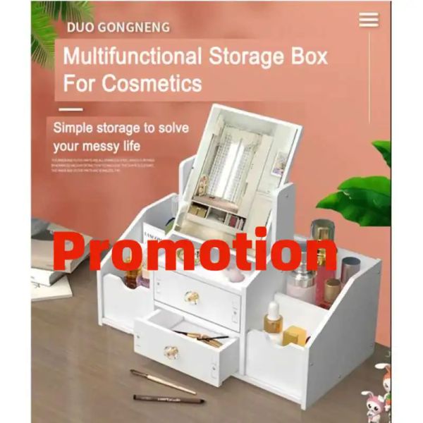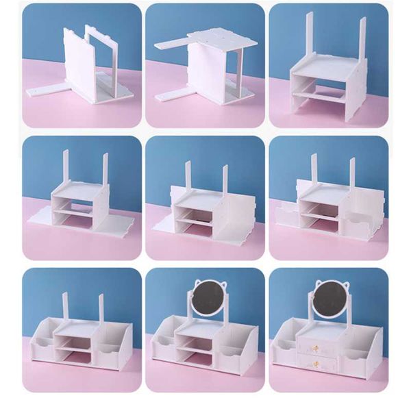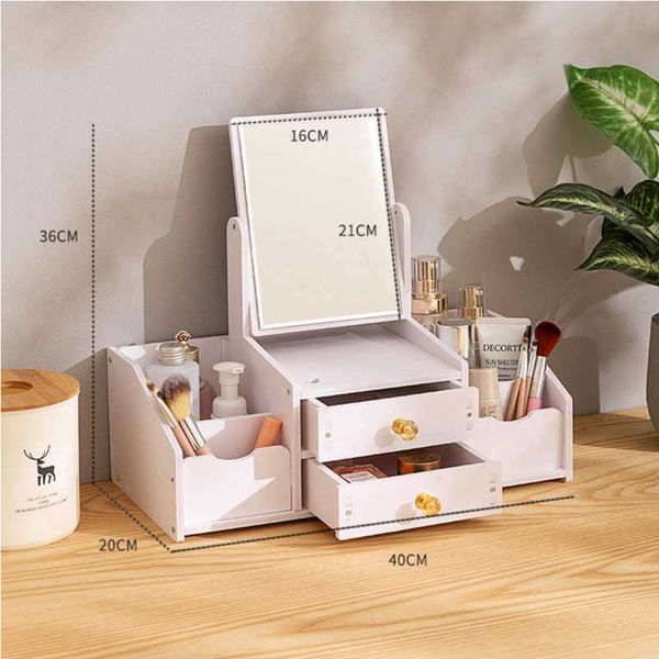 Hogar simple. Muebles pequeños. Caja de almacenamiento de escritorio de madera. Gabinete de almacenamiento diy. Espejo de maquillaje desmontable y ensamblado. Espejo de almacenamiento de cosméticos de doble División de bombeo doméstico. Mesa de maquillaje. Gabinete de maquillaje. Armario de mujeres