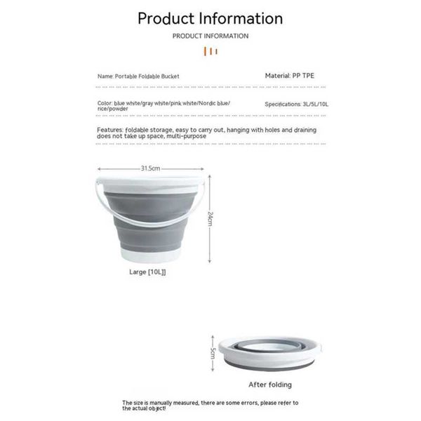Portable Folding Bucket Silicone Plastic Car Bucket Children's Outdoor Fishing Bucket Travel Home Multifunctional Bucket