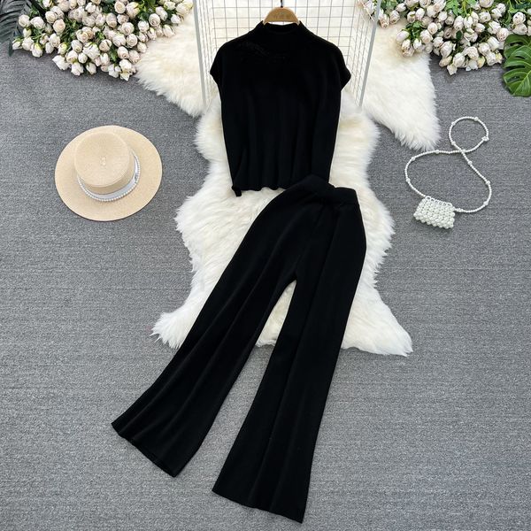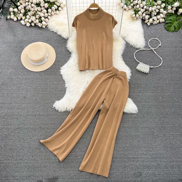 Fashion suit for women Korean style sleeveless stand collar slim slim vest two piece set high waist slim straight wide leg pants