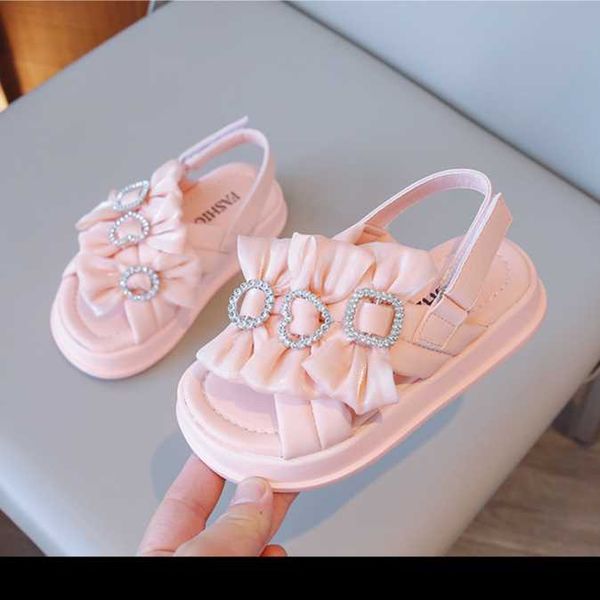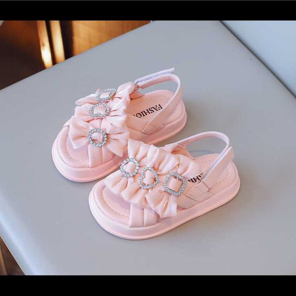 Girls' 2023 new summer sandals for large children, breathable bows, children's small fragrant soft-soled beach shoes princess