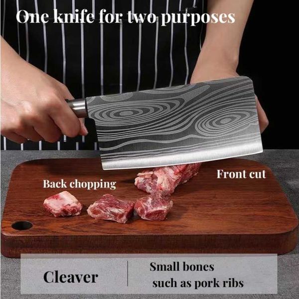 Household kitchen knife, Chinese style sharp bone chopping knife, traditional dual purpose wooden handle chopping knife
