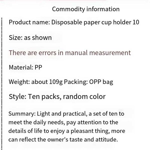 Set of 10 disposable paper cup holders