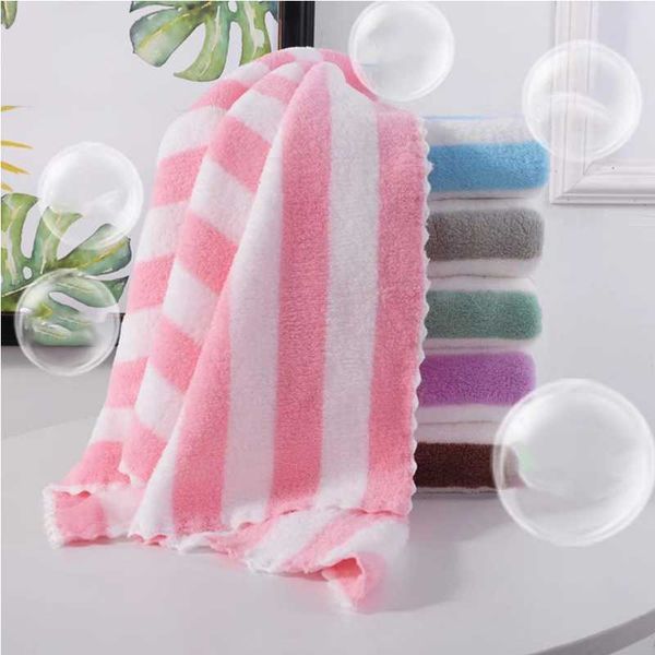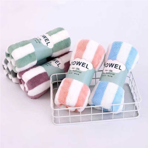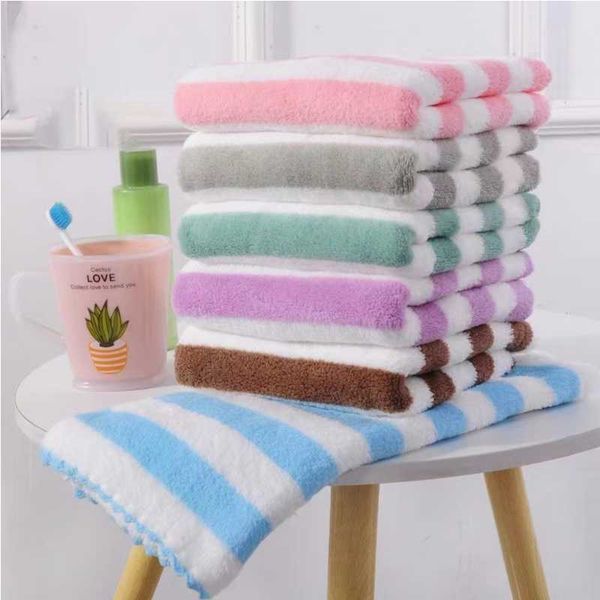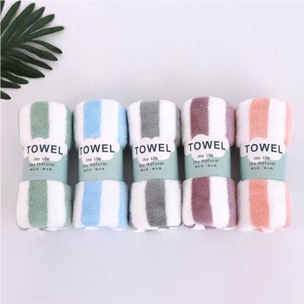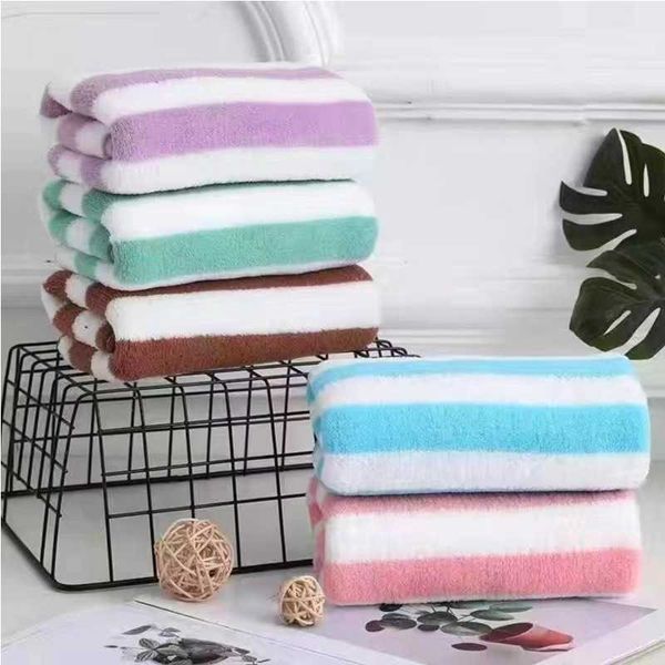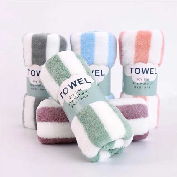 High density coral velvet cationic towel is super soft, absorbent, and does not shed hair compared to pure cotton. It can wash face and wipe hair quickly, and has vertical stripes