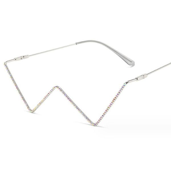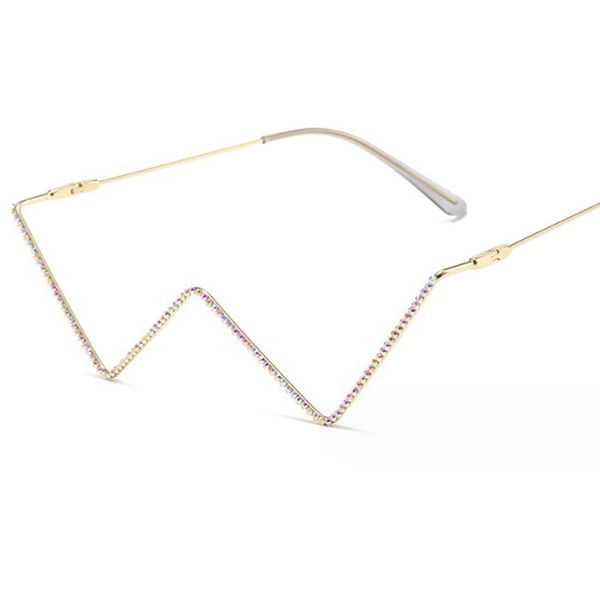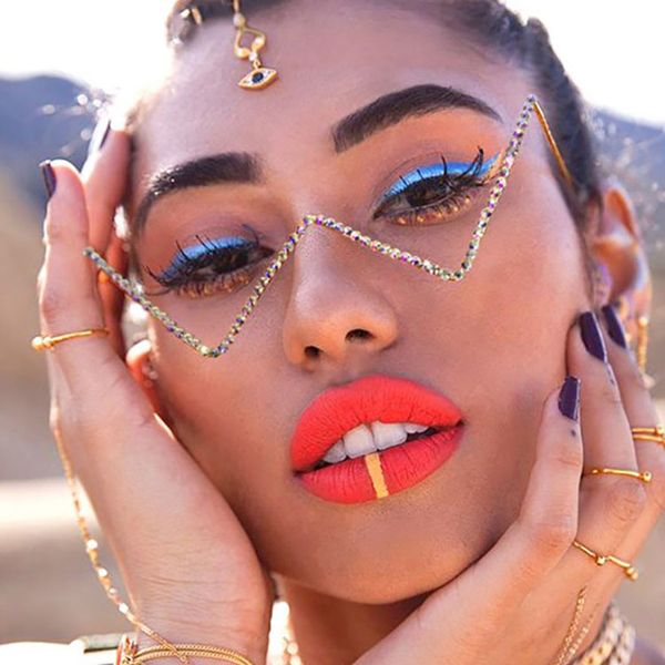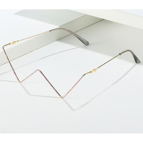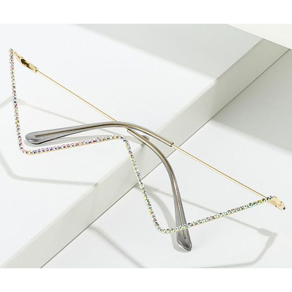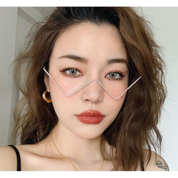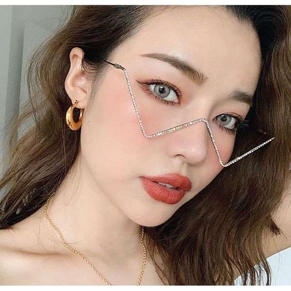 New fashionable metal diamond-encrusted triangular lens-less flat mirror European and American personalized V-shaped cat eye decorative glasses frame trend