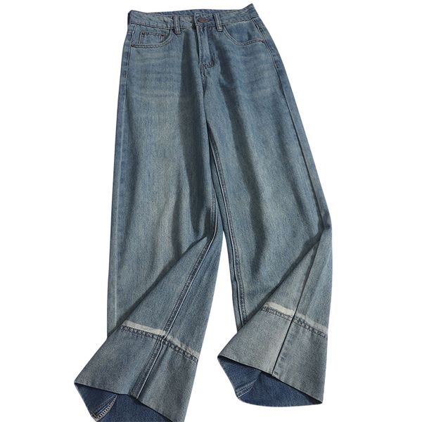 2024年春季新款复古百搭高腰宽松直筒牛仔裤女小个子宽边大筒裤