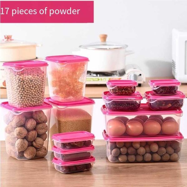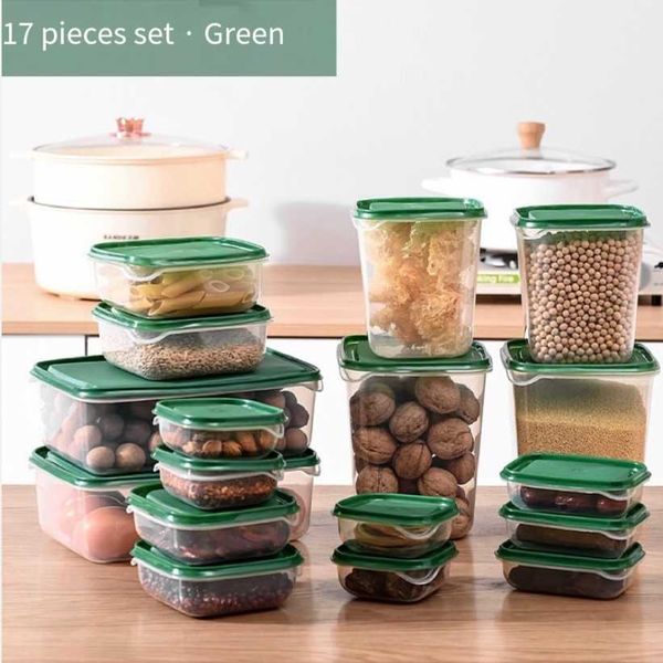 A set of 17 pieces, fresh-keeping box, sealed storage box, and multiple capacities to meet different needs. Suitable for both dry and wet conditions, transparent and visible, with a large mouth diameter and easy to clean. Environmentally friendly material, suitable for microwave use.