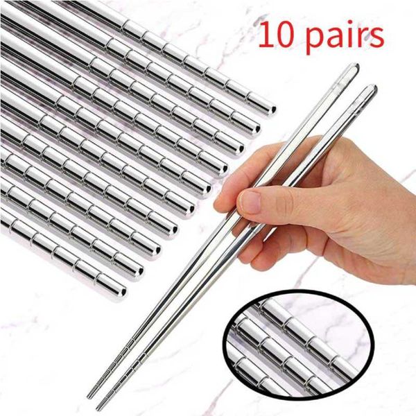 10 pairs Stainless Steel Chopsticks Set Metal Non-slip Steel Chopstick Kit Reusable Home Kitchen Tools