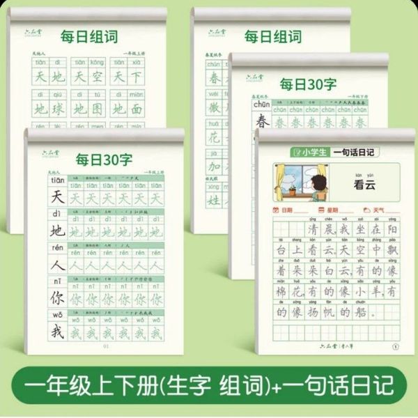 សៀវភៅអនុវត្តការសរសេរអក្សរផ្ចង់ជាភាសាចិនថ្នាក់ទី 1 ក្នុងមួយឈុតមាន5ក្បាល សម្រាប់សិស្សដែលសិក្សាវគ្គដំបូង មានទាំងអក្សរចិន ព្យពា្ជនៈ&ស្រះ【巨划算】一句话日记+一年级 上下册( 一共5本)