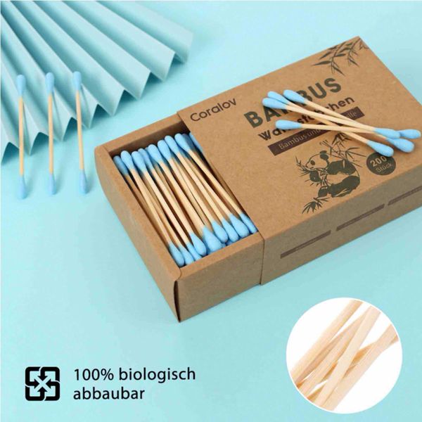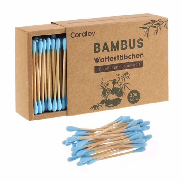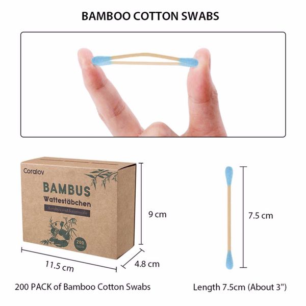 Coralov 200pcs/box Bamboo Cotton Swabs Wood Sticks Soft Cotton Buds Ear Cleaning Makeup Tools