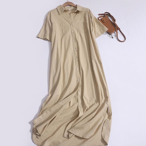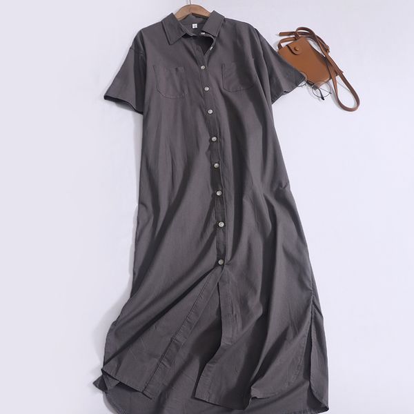 2024 spring and summer new loose design niche lapel single-breasted long over-the-knee slit shirt dress