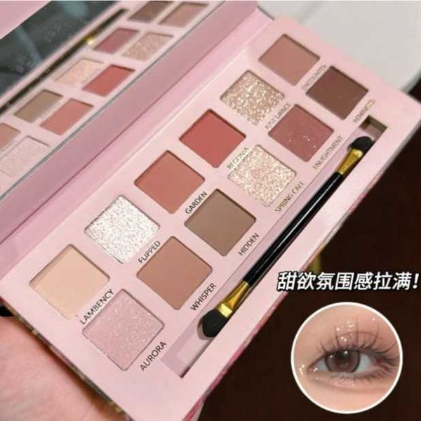 New 12-color Begonia flower oil painting style pink brown eye shadow palette matte pearlescent fine glitter earth color low saturation eye shadow palette