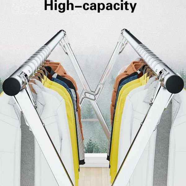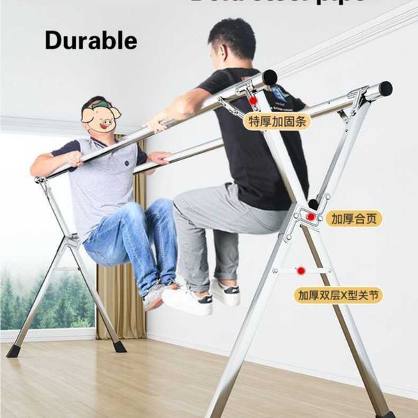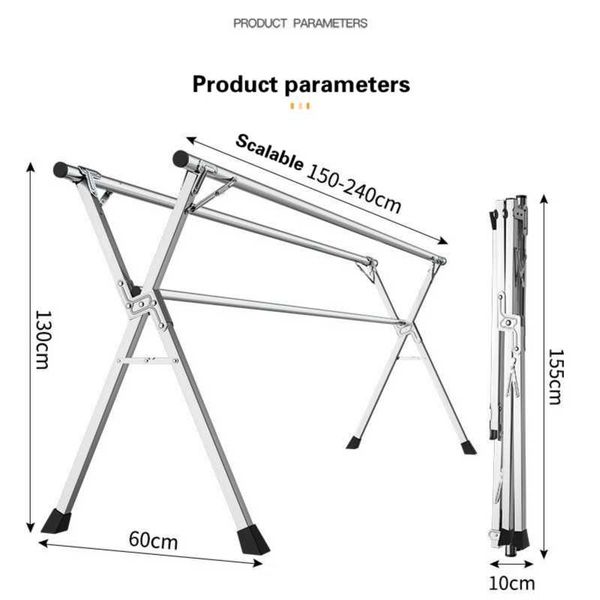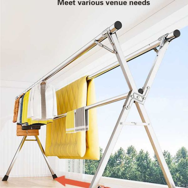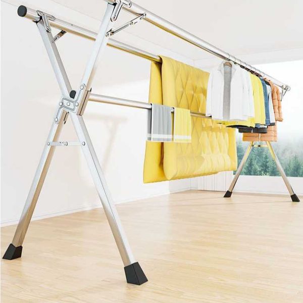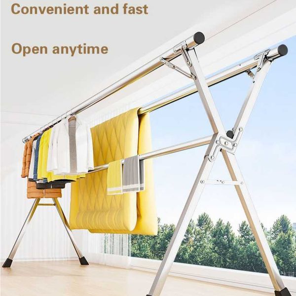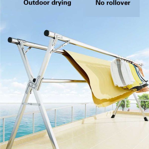 Stainless steel clothes drying rack, floor folding, indoor and outdoor clothes drying rack, double pole balcony clothes hanging rack, X-shaped telescopic