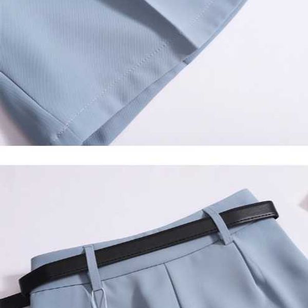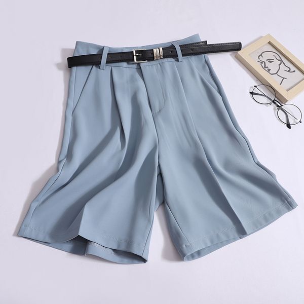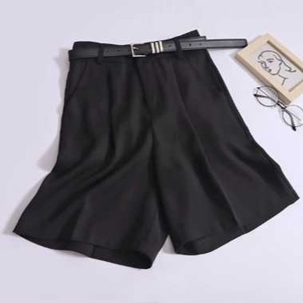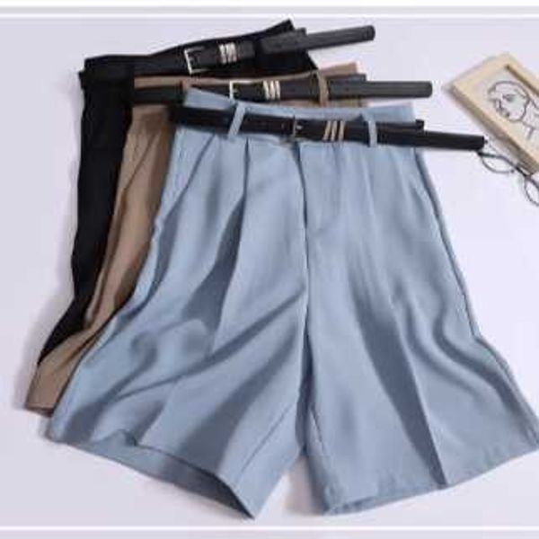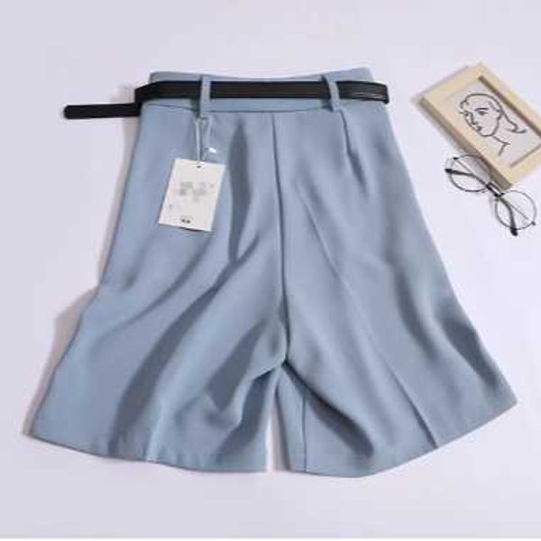 Casual suit shorts for women summer 2024 new high-waist slim A-line small wide-leg five-quarter pants with belt