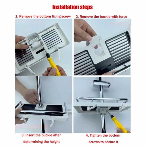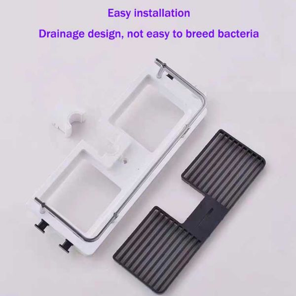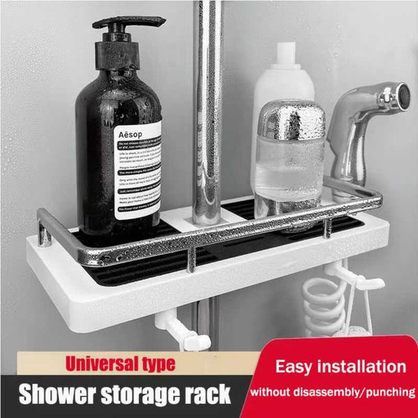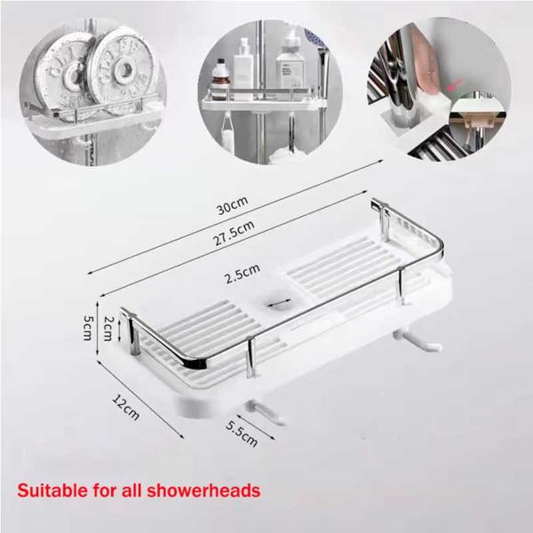 Toilet storage rack, simple and non perforated square shower rod, shower rod, multifunctional shower storage tray