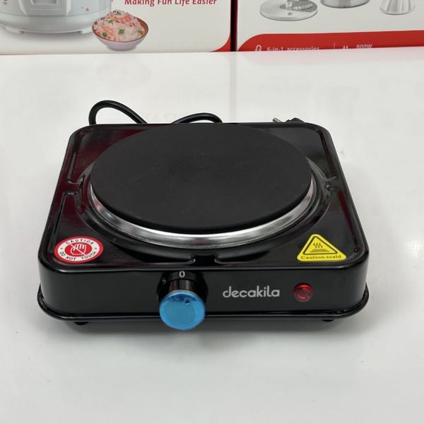 Voltage:220-240V 50-60Hz Power:1000W One burner Heavy duty cast iron heating surface Portable Electric stove Use with all flat bottom cookware metal,glass,ceramic,woks and teakettles 5 heat settings Packed by color box