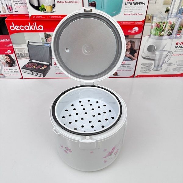 Capacity: 1.8L(10cups) Voltage: 220-240V 50-60Hz Wattage: 700W With one side non-stick coating With 1pcs spoon With 1pcs measuring cup With 1pcs plastic steaming basket Split power cord Packed by color box